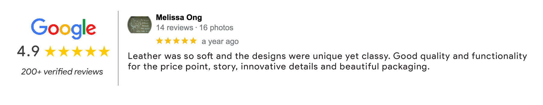 "Their nappa leather was really soft and their designs were innovative yet classy. Superb quality and functionality for the price point. Beautiful packaging.”
