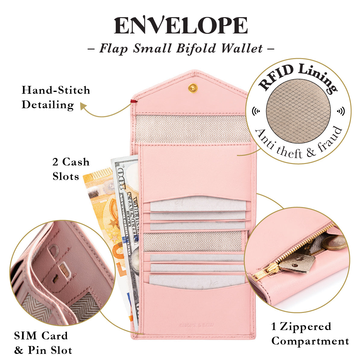 Envelope Flap Coin Small Bifold Wallet (Nappa Leather | RFID)