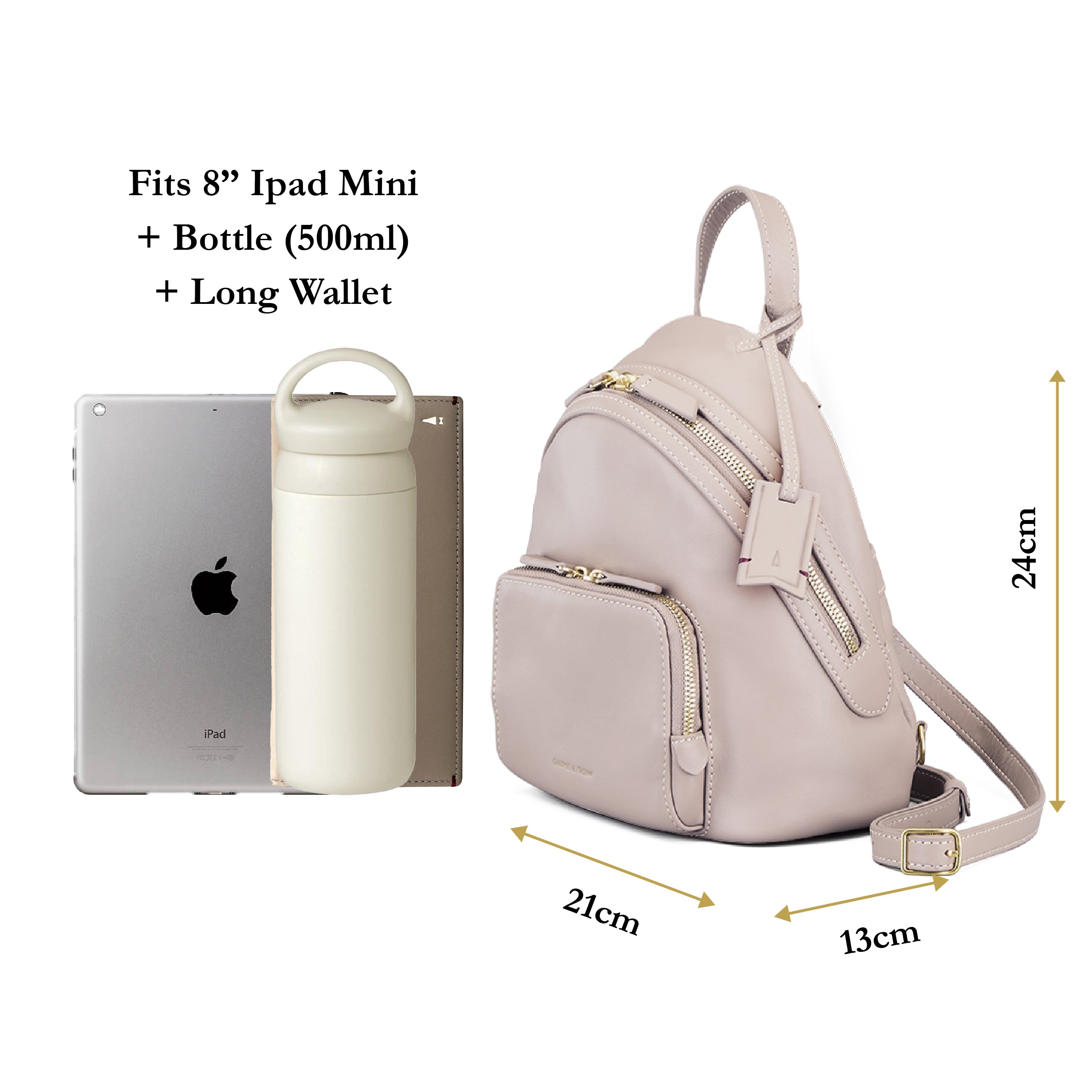A compact convertible 3-way crossbody leather backpack for the stylish urbanite seeking hands-free travel convenience. A wide curved opening gives quick access to the spacious interior that holds a 8" Ipad Mini Tablet bottle, long wallet, phone with multiple pockets to organise your cards and smaller items. Crafted in full grain genuine leather for long lasting durability and combined with lightweight water resistant nylon for easy maintenance.