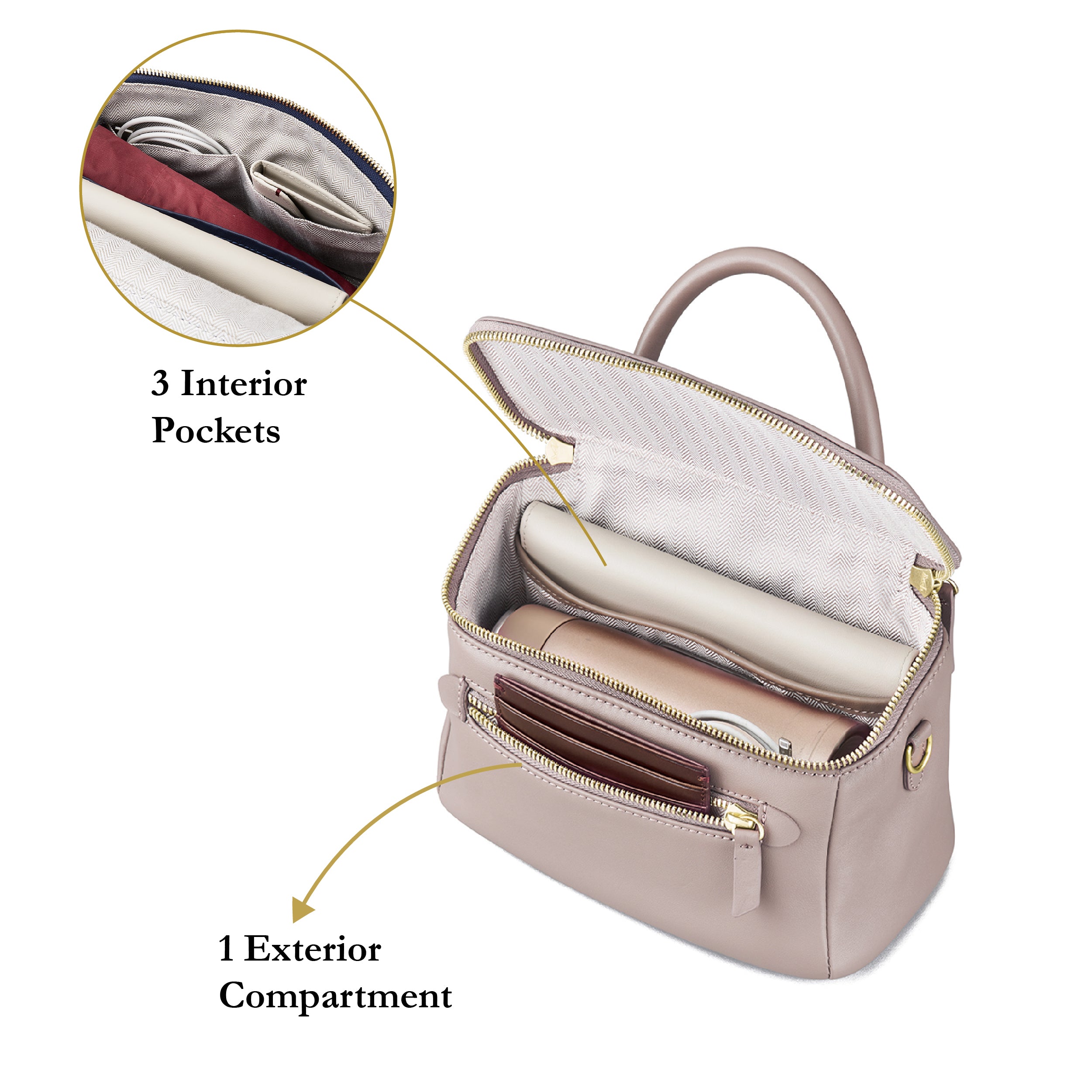 A luxurious leather crossbody handbag for the modern women seeking style, function and hands-free convenience for everyday and travel. A wide top load opening leads to a spacious interior that holds your iPad mini tablet, bottle and umbrella with multiple pockets to organise your phone, wallet and passport. Crafted in full grain genuine leather for long lasting durability and combined with lightweight water resistant nylon for easy maintenance.